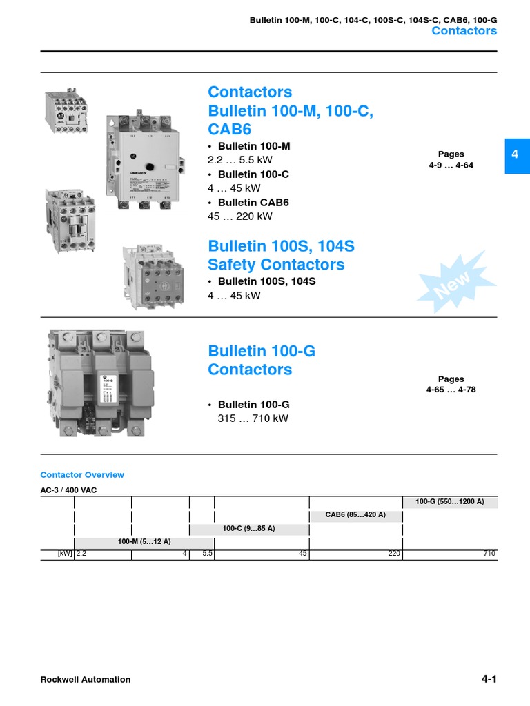 Literature Library Rockwell Automation. Bulletin 100S-C104S-C Safety Contactors 3 Product Selection 3-Pole AC-Operated Contactors AC Operating Mechanism 3 Main Contacts For other contact configurations please contact your local Rockwell AutomationAllen-Bradley sales office. Specifications 10 General i l 12 13 14 This specification describes requirements for electro-mechanical ICS 1988.